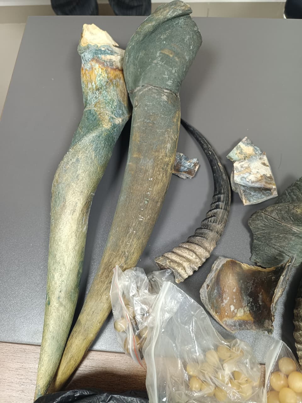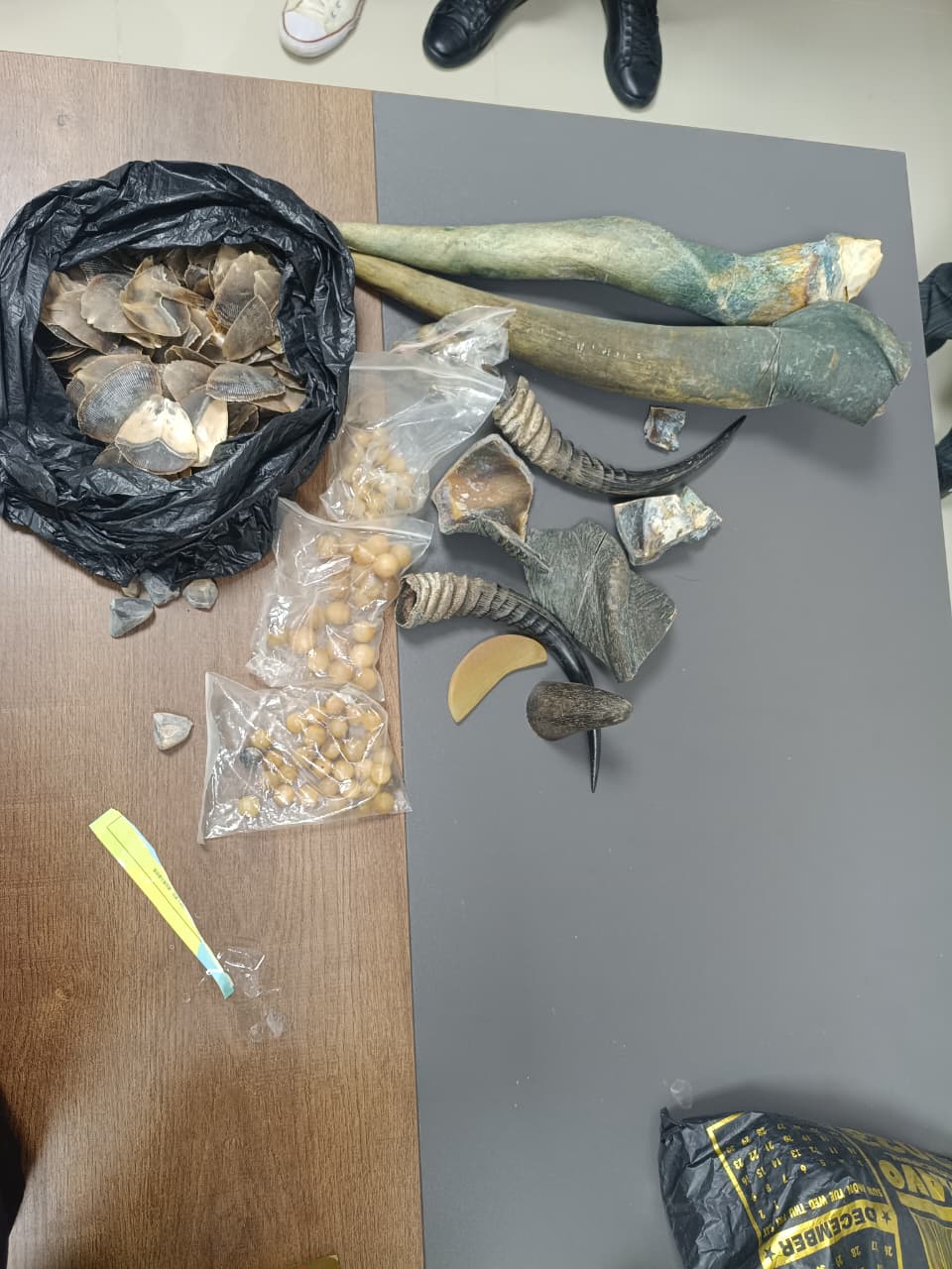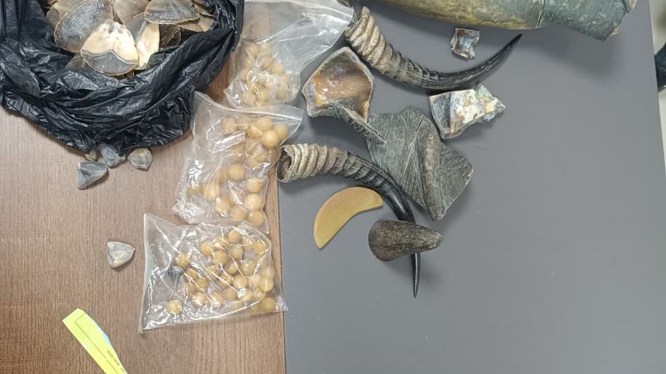 Importa referir que durante as buscas no Estabelecimento foram encontrados e apreendidos produtos de origem animal, presumivelmente provenientes de caça furtiva, concretamente dois quilogramas de escamas de pangolim, 4 chifres de antílopes africanos, entre outros. Foram ainda apreendidos o montante de doze milhões e quinhentos mil kwanzas, diversos materiais de carácter erótico, uma substância suspeita de ser droga, que será submetida a exames em laboratório específico.